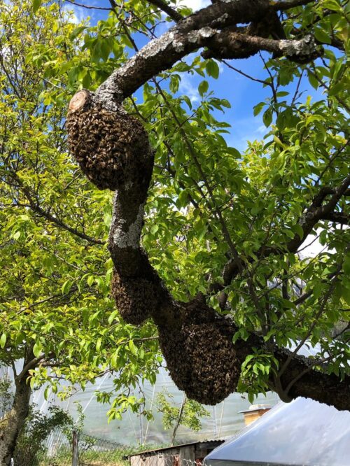 Wenn sich der Bienenschwarm niedergelassen hat, kann es so aussehen: